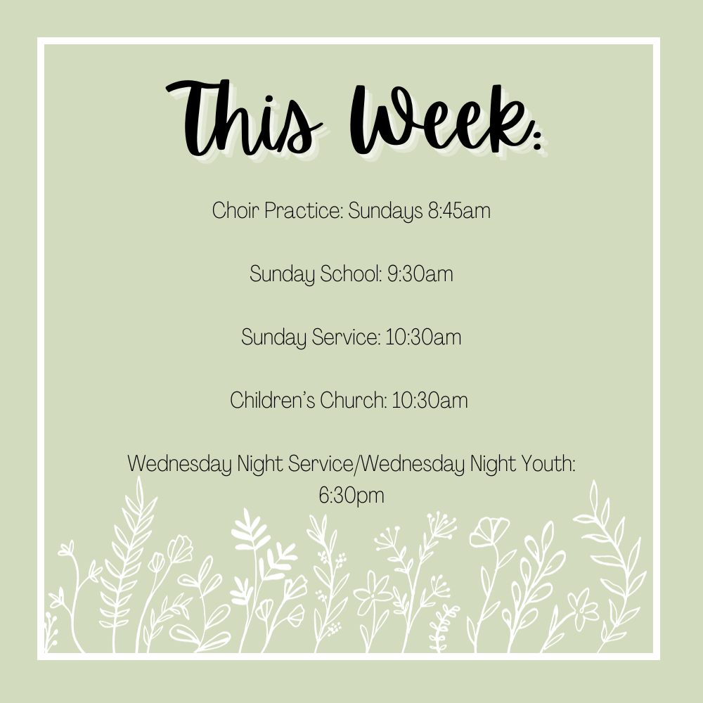 Wednesday Night Service/Wednesday Night Youth: 6:30pm